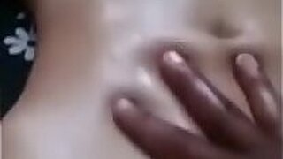 Desi Girl playing and massaging her big tits with oil